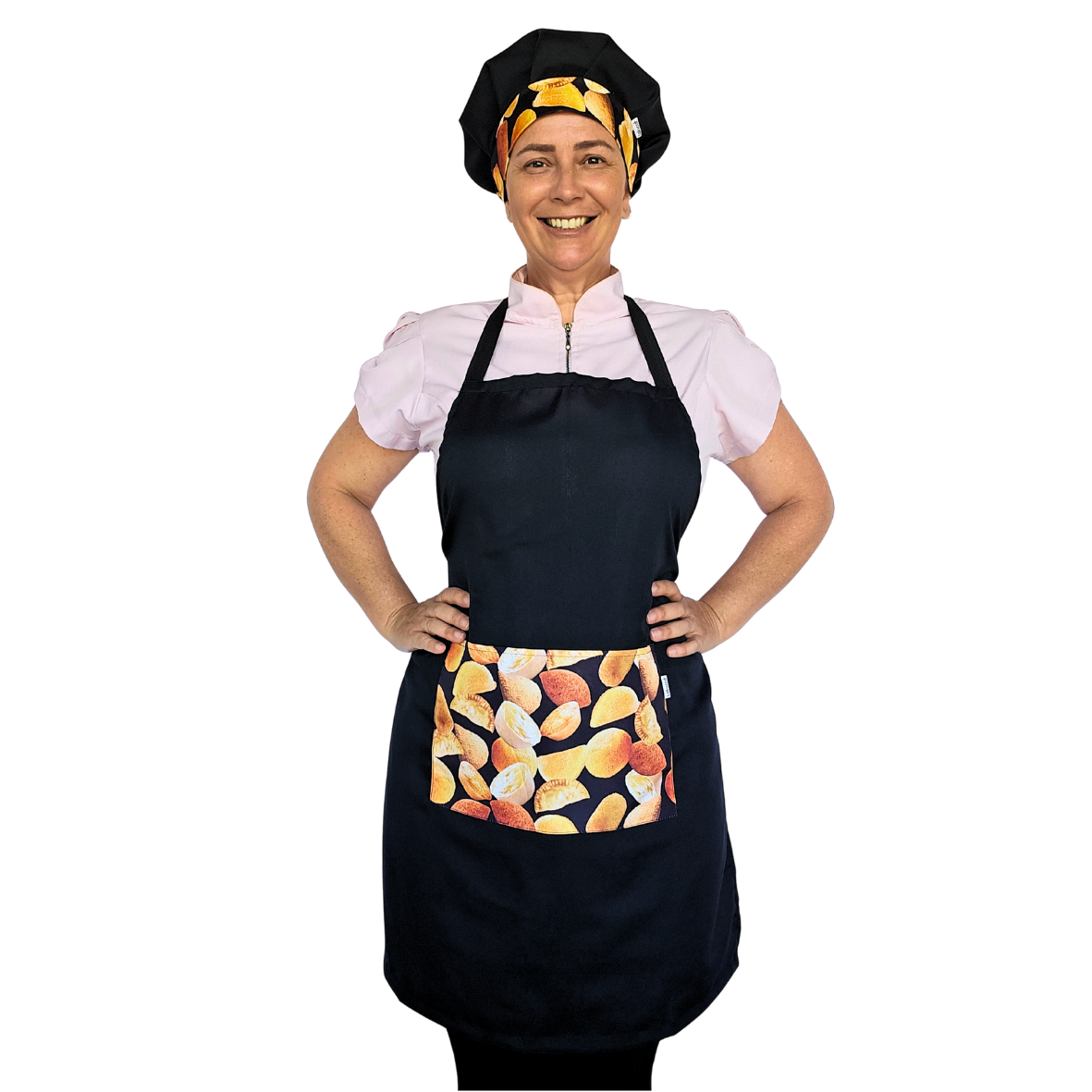 Kit Avental e Touca Gourmet Estampada – Salgados da Lakucca foi pensado para quem quer cozinhar com conforto sem abrir mão do estilo. O avental e a touca vêm na estampa Salgados, trazendo um visual divertido e profissional para a cozinha.